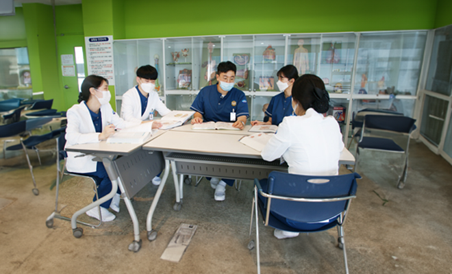 현장실무를 반영하는 임상실습을 실시하는 제주관광대학교 간호학과입니다.