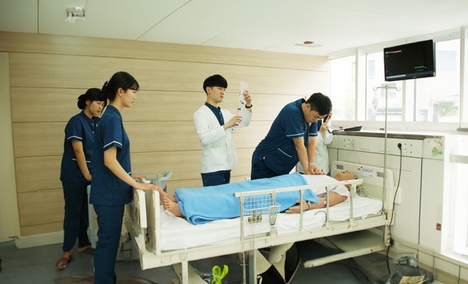 현장실무를 반영하는 임상실습을 실시하는 제주관광대학교 간호학과입니다.